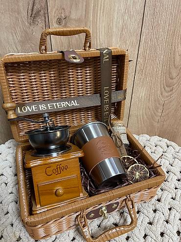 Подарочный кофе набор • Плетеный чемоданчик (с кожаными креплениями) •