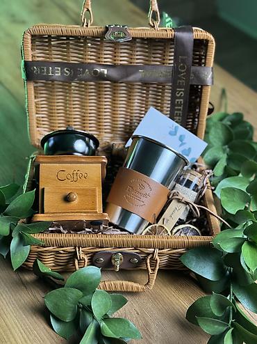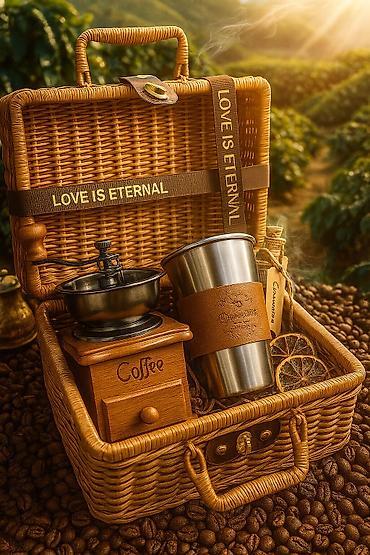 Подарочный кофе набор • Плетеный чемоданчик (с кожаными креплениями) •