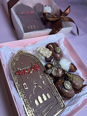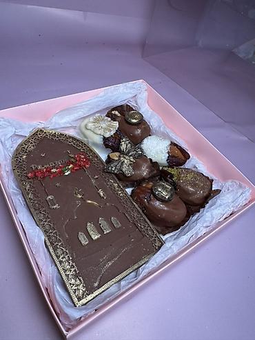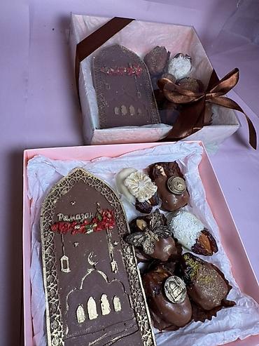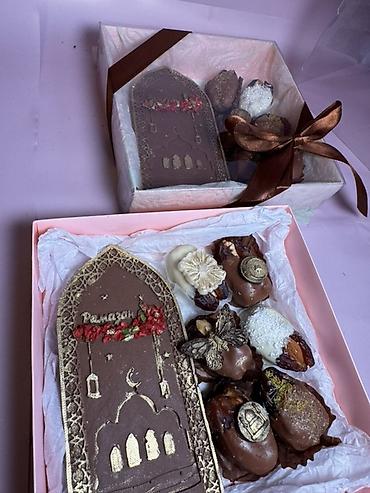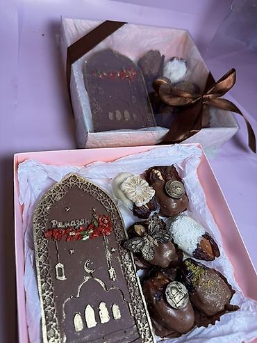 Подходит для угощения на ифтар, праздничного подарка, благодарности коллегам и близким. Ароматный шоколад, натуральные сухофрукты и орехи, нарядная подача — готовое решение для торжества.