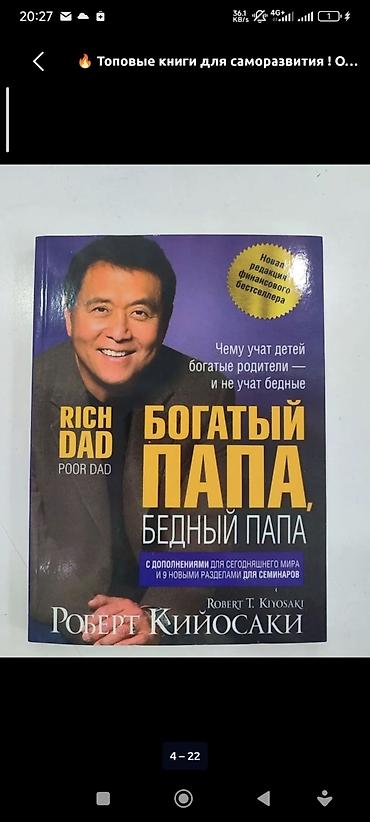 Набор из 6 популярных книг на русском языке: 1) Роберт Кийосаки — «Богатый папа, бедный папа» (Rich Dad Poor Dad) . -200 СОМ 2) Джен Синсеро — «НИ СЫ» - 200 СОМ 3) Китами Масao — «Самурай без ...