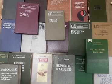 - Медицинская литература и учебники: «Внутренние болезни» (несколько томов и разные авторы), «Нервные болезни», «Акушерство», «Общая гигиена», «Справочник по клинической фармакологии и фармакотерапии», «Дифференциальная диагностика кожных болезней», «Неотложная помощь», издания «Учебная литература для студентов медицинских институтов» и другие специализированные пособия.