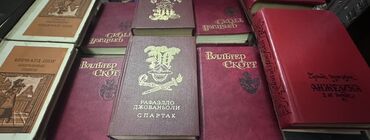 - Художественная литература: собрания сочинений в твердых переплетах, среди заметных изданий — Вальтер Скотт, Рафаэлло Джованьоли «Спартак», Бернард Шоу «Избранные пьесы», классика в серии однотипных бордовых/красных переплетов с золотым тиснением.
