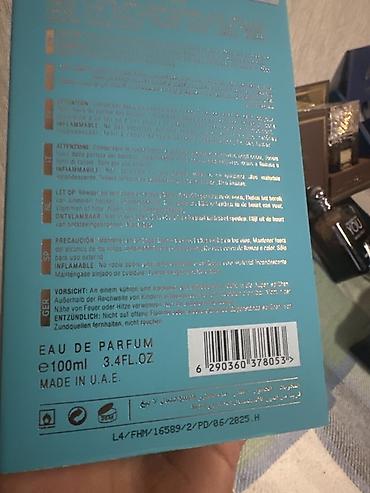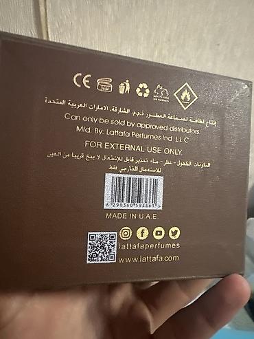 - Арабский парфюм в бирюзовой подарочной шкатулке Vulcan Eau de Parfum, 100 ml, Made in U.A.E., штрих‑код . Техническая информация и сроки на обороте.