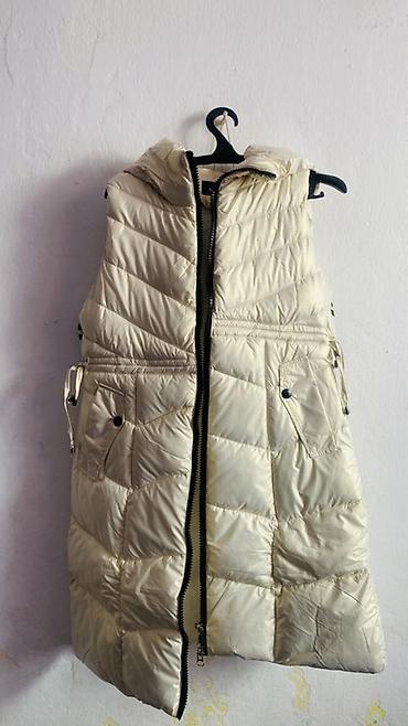 2) Удлинённый пуховый/стёганый жилет, молочный.
