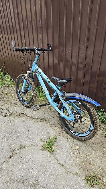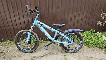 Подходит для катания по городу и легкому бездорожью: амортизация спереди и сзади сглаживает неровности, широкие покрышки обеспечивают сцепление, дисковые тормоза дают уверенное торможение. Яркая голубая расцветка и защитные наклейки на ободах. Единственный минус надо переключатель на передний суппорт поменять, а так велосипед на ходу в хорошем состоянии.