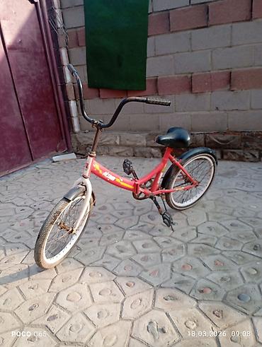 Детский/подростковый велосипед с колёсами около 20". Особенности: - Стальная рама классической геометрии. - Прямая вилка. - Руль BMX‑типа с грипсами. - Одна звезда спереди, задняя трещотка, цепной...