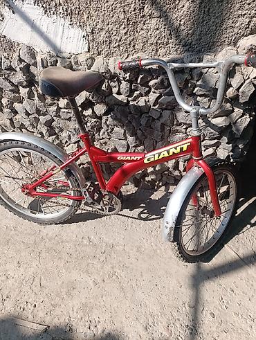 Детский/подростковый горный велосипед GIANT (бренд на раме) с колесами 20" Основные характеристики: - Размер колес: 20 дюймов, покрышки с выраженным протектором для грунта и асфальта. - Рама: стал...