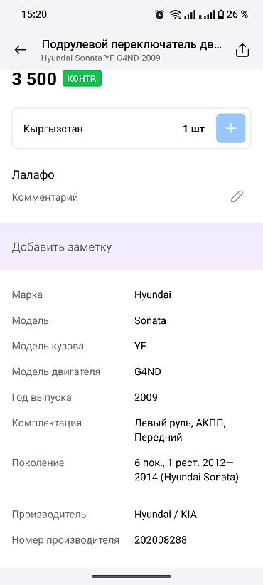 - Платформа YF (Hyundai Sonata 2009–2014, уточняйте по номеру детали и конфигурации: левый руль, АКПП, передний привод).