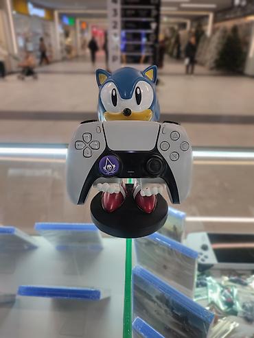 - Руки Соника выполнены как «кронштейн» для контроллера — удобно держит геймпады формата DualSense/PS5 и схожих по размеру (Xbox/ Switch Pro и др.), а также смартфоны, пульты и небольшие аксессуары.