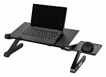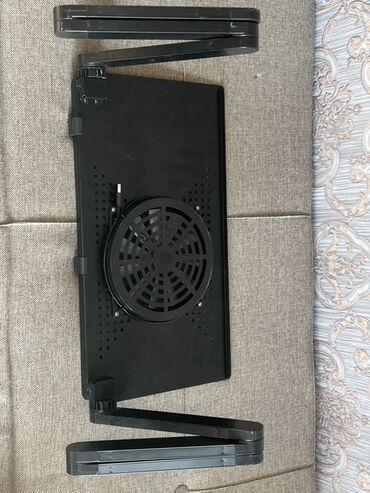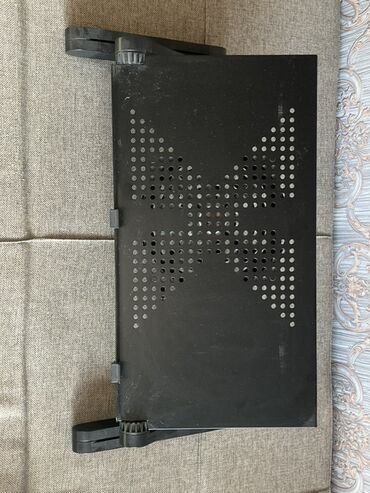 Многофункциональная подставка для ноутбука черного цвета, оснащенная регулируемыми ножками с шарнирными соединениями для удобной настройки высоты и угла наклона. Подставка имеет перфорированную поверхность для эффективного отвода тепла и встроенный вентилятор, обеспечивающий дополнительное охлаждение устройства. Компактная конструкция позволяет использовать ее как на столе, так и в кровати, обеспечивая комфорт при работе или отдыхе. Идеально подходит для предотвращения перегрева ноутбука и улучшения эргономики рабочего места.