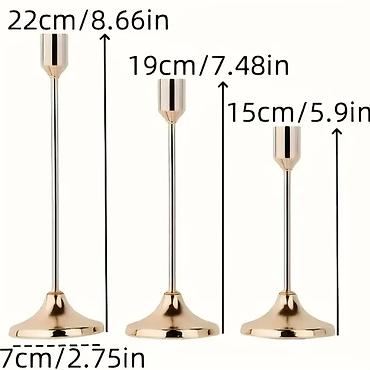Набор из 3 высоких подсвечников для тонких свечей (свечей-«тонких»/dinner candles). - Дизайн: минимализм с акцентом на черный глянец и золотистые вставки. Стройные металлические стойки на круглых ...