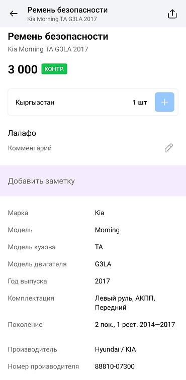 - Тип: передний инерционный ремень безопасности (ELR-VW), с преднатяжителем (AIRBAG).