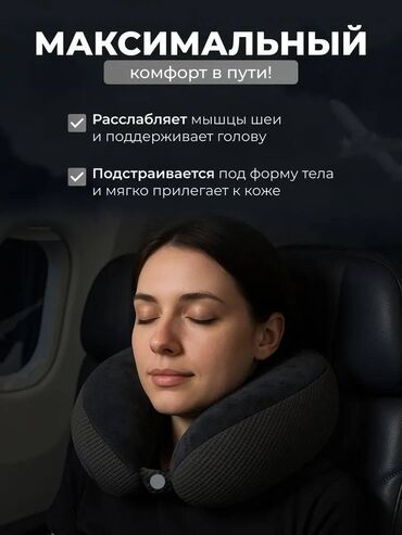 Поддерживает шею, снимает напряжение, подходит для самолёта, авто и офиса.
