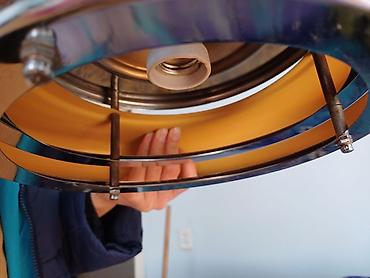 - Подвес: гибкий провод в тканевой/шнуровой оплётке, верхняя декоративная чаша из хромированного металла.