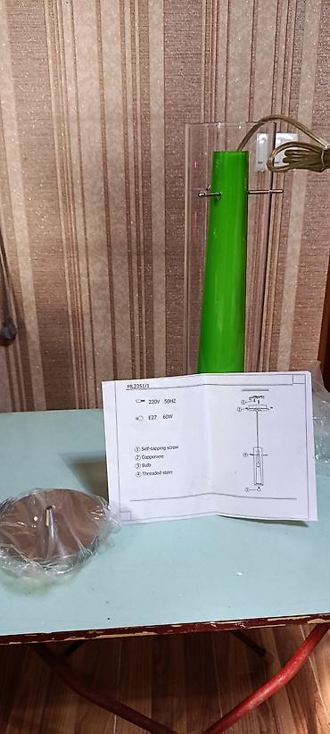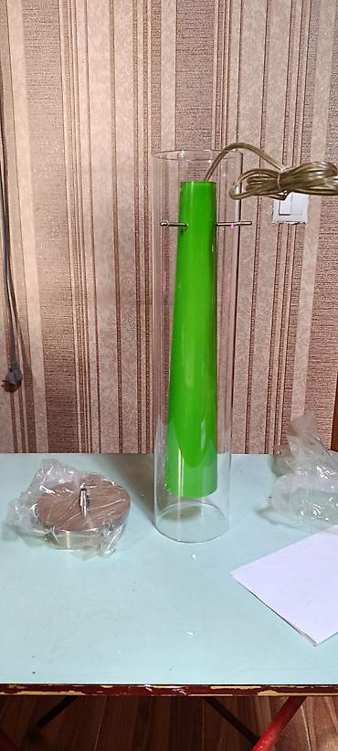 - Тип: подвесной, цилиндрический плафон из прозрачного стекла с внутренним декоративным элементом зелёного цвета.