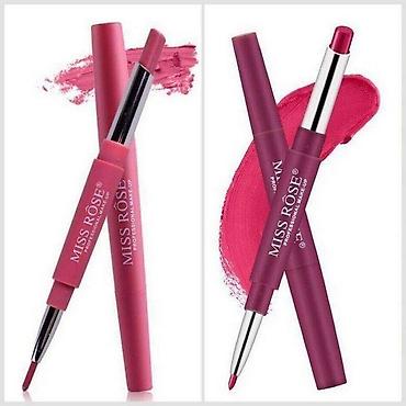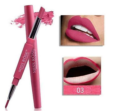 Подводка и помада в одном флаконе Miss Rose, легкий фруктовый аромат, увлажняющая текстура, стильный дизайн, матовый финиш, НЕ сушит губы. Удобный вариант для создания полноценного макияжа губ, выкручивающийся карандаш с одной стороны, с другой стороны представлена матовая помада такого же оттенка. Не нужно больше подбирать карандаш под цвет помады и наоборот, тут есть все.