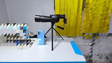 - Подходит для использования на столе или переносных поверхностях; штатив складной, с телескопическими ножками.
