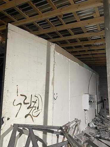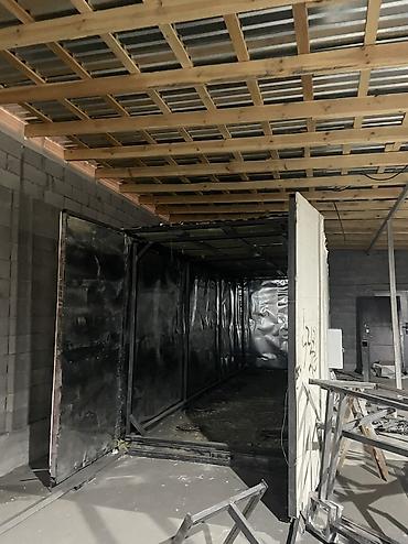 Дополнительные данные на фото: металлическая внутренняя оболочка камеры, наружные стеновые панели, щиток электропитания, усиленная деревянная обрешетка потолка, широкие ворота для заезда.