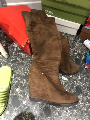 Сапоги хорошие качественные из чёрной мягкой бархатистой замши, размер 39 (подойдут и на 38 размер), турецкие. Один раз одевала в офис, мне маловаты. Продаю за 2900сом (покупала в магазине за 85...