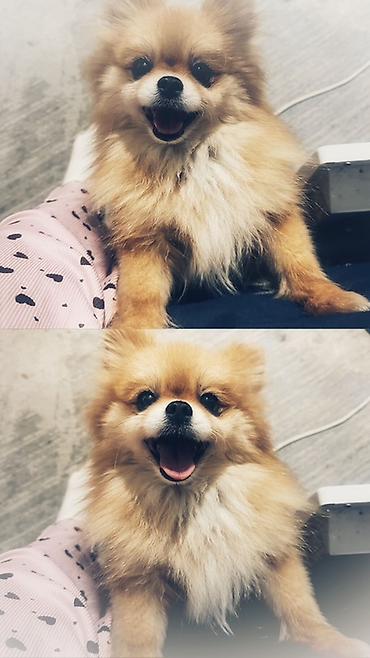 Порода: шпиц (померанский тип), окрас кремовый. Компактный формат, плюшевая шерсть с плотным подшёрстком, выразительные тёмные глаза, аккуратные ушки. Хвост пушистый, закручен на спину. Характер: ...