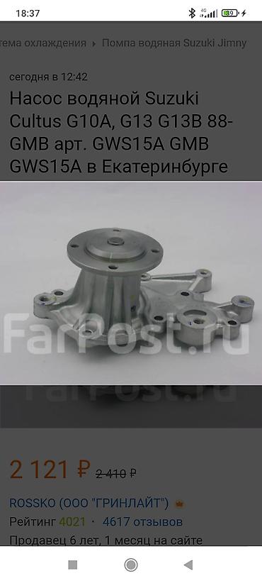 - Модель/применяемость: Suzuki Cultus G10A, G13, G13B; также подходит для Suzuki Jimny (указано в каталоге).