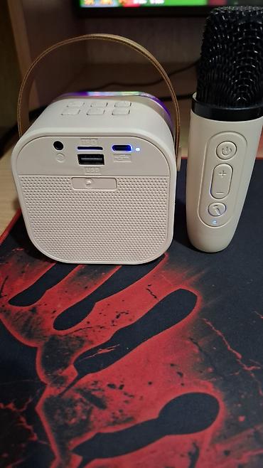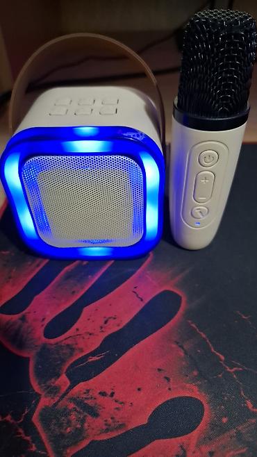 - Комплект: мини-колонка с подсветкой и беспроводной микрофон.