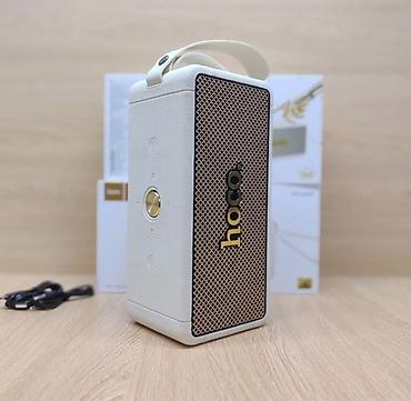 Портативная колонка Hoco HT1 Max, выполненная в кремовом цвете, обеспечивает качественный звук. Модель имеет прямоугольную форму с закругленными углами и металлическую решетку динамика, которая защищает излучатели. Золотистый логотип Hoco расположен по центру решетки. На верхней панели находятся кнопки управления и золотистый регулятор громкости. Для удобства переноски предусмотрен ремешок. Эта колонка идеально подходит для использования дома, на природе или в путешествиях.