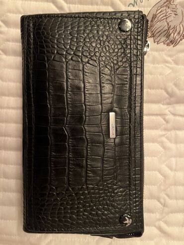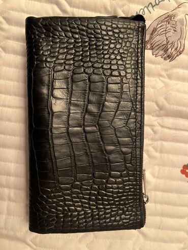 Портмоне/клатч Karya из чёрной кожи с тиснением под крокодила.