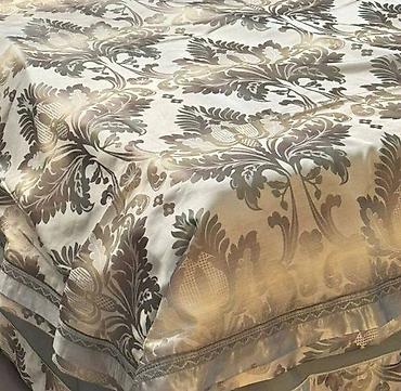 Мягкая, шелковистая ткань приятна на ощупь и идеально ложится по поверхности кровати, создавая ощущение комфорта и изысканности.