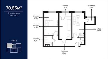 2 комнатная квартира 70.83м2