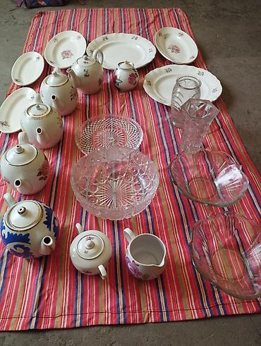 Для меда 6 шт (600сом), Графин+5 стаканов (600 сом), Графин голубой с 2 стаканами 300 сом. Только звонить!!!!