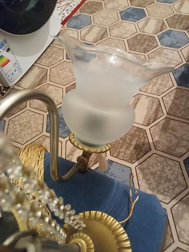 В комплекте: люстра с тремя стеклянными плафонами и декоративными подвесами.