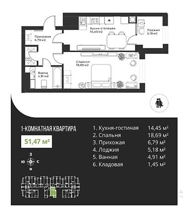 🏢 Площадь 51,47 м²
