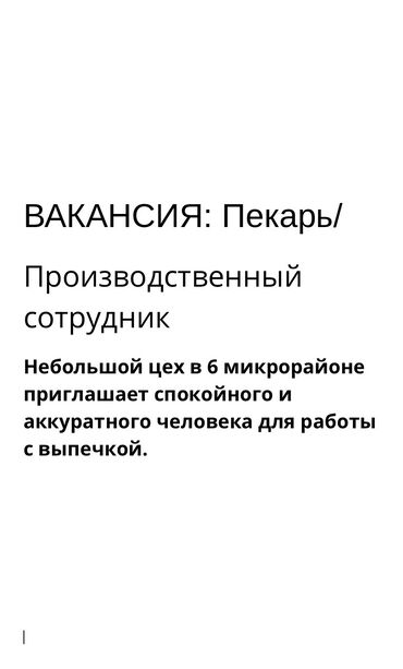 ✅ ВАКАНСИЯ: Пекарь в кулинарию