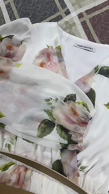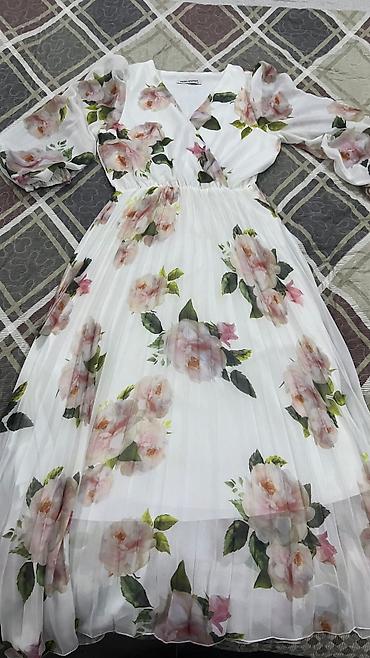 Платье макси с принтами и поясом - Длина: макси - Крой: свободный силуэт с акцентом на талии, съёмный пояс с круглой пряжкой в тон - Верх: стойка-воротник, планка на пуговицах по всей длине - Рука...