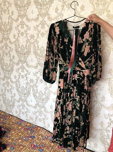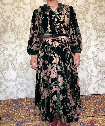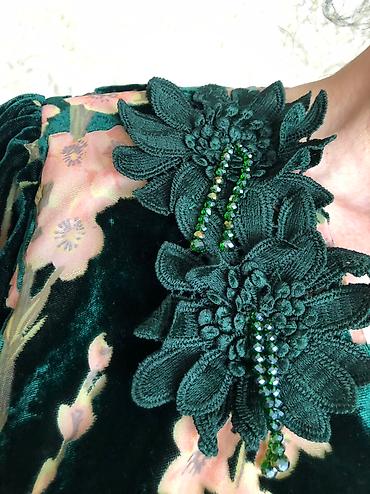 Новое бархатное изумрудное платье Gumanize, размер 56. - Длина макси, свободный силуэт. - Материал: бархатистая ткань с рельефным узором. - Цвета: изумрудно‑зелёные цветы на черно‑сером орнаменте ...