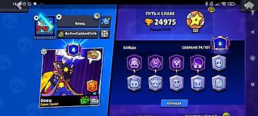 Игровой аккаунт Brawl Stars Характеристики: - Кубки: 34 011 (рекорд 34 016), Лига силы II - Уровень профиля: 15 - Бойцы: 97 из 101 - Большинство бойцов прокачаны до 11 уровня силы, собраны снаряже...
