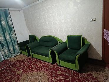 Продаю набор мягкой мебели: диван и два кресла, диван раскладывается, б/у, в отличном состоянии. 80 000 сом, торг уместен.