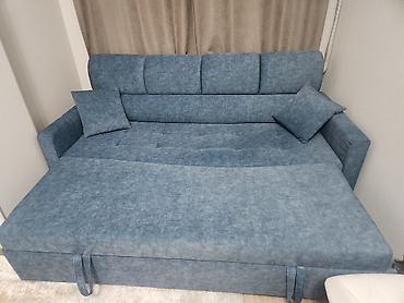 Цвет: синий (джинсовый оттенок). Спальное место формируется из сиденья и выкатной платформы — ровное и широкое. Идеально для ежедневного использования и приема гостей.