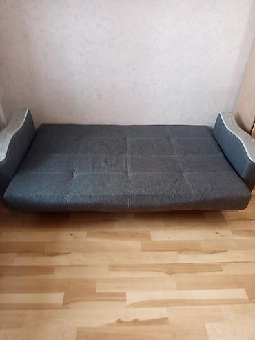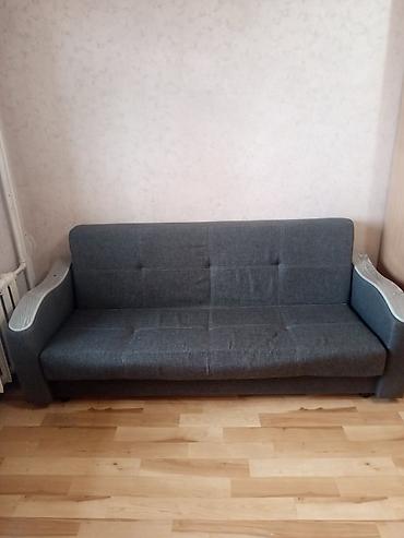Диван с подушками, раскладывающийся почти новый. - Компактный прямой диван в серой обивке с текстурой. - Два объемных декоративных/опорных подушки в комплекте. - Массивные подлокотники с накладкам...