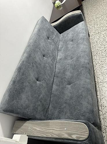 Прямой диван и раскладной в современном стиле, серый велюрово-замшевый эффект обивки.