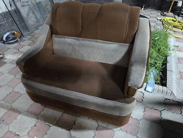 Диван-кровать компактный, двухместный 2 шт. - Тип: раскладной диван (клик-клак/еврокнижка типажа) с высокой спинкой - Обивка: ткань, коричневый оттенок с геометрическим узором и декоративной прост...