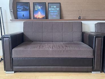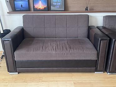 - Компактный двухместный диван с механизмом раскладывания «книжка» — превращается в ровное спальное место.