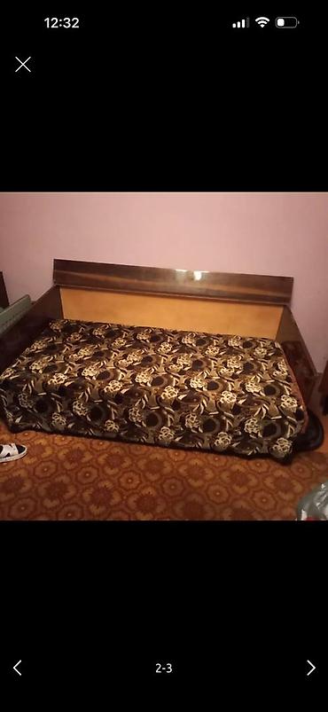 Раскладной диван-кровать советский. - Конструкция: широкий трехсекционный диван с высоким деревянным каркасом и боковинами. - Механизм: раскладывается в полноценное спальное место. - Наполнение/ко...