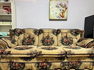 Классический трёхместный диван с высоким мягким спинным блоком и глубокими сиденьями.В комплекте 2 дивана,2 кресла За все 4 дивана 4000 сом Характеристики: - Размеры: длина около 2,04 м, высота сп...