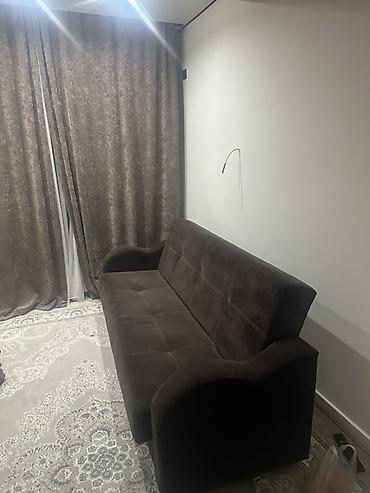 Раскладной диван-кровать - Тип: прямой раскладной диван с механизмом трансформации в полноценное спальное место - Обивка: мягкая ткань/микрофибра темно-коричневого цвета - Дизайн: крупная квадратн...