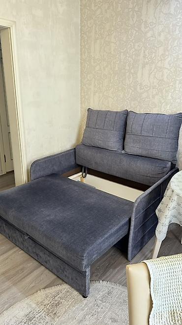 Г. Кара-Балта Компактный раскладной диван с ящиком для белья. - Тип: двухместный диван-кровать. - Механизм: выкатной/раскладной; спальное место формируется из сиденья и выдвижной секции (ручки дл...