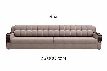 Прямой диван 4 м, цена: 36 000 сом - Тип: большой прямой диван - Длина: 4 метра - Посадочных мест: 4–5 - Обивка: мягкая ткань серо-синего оттенка, с вертикальной простёжкой на спинке и сиденье - П...