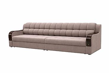 Прямой диван большого размера с подлокотниками и подушками. Длина - 4 метра, раскладной механизм, спальное место - 1,80 - Современный лаконичный дизайн, нейтральная бежево‑тауповая обивка, легко ...