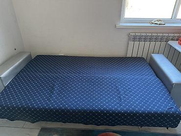 Почти новый Раскладной диван-кровать с подлокотниками и изголовьем - Тип: диван-книжка (раскладывается в полноценное спальное место) - Обивка: ткань велюрового типа в синем/бирюзовом оттенке; защи...
